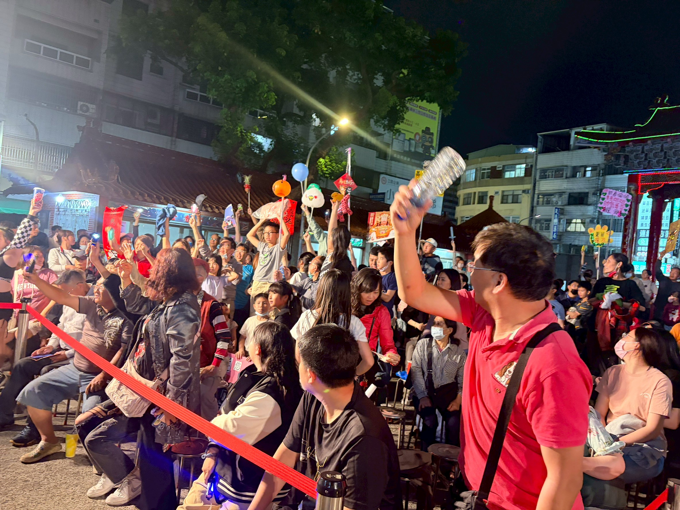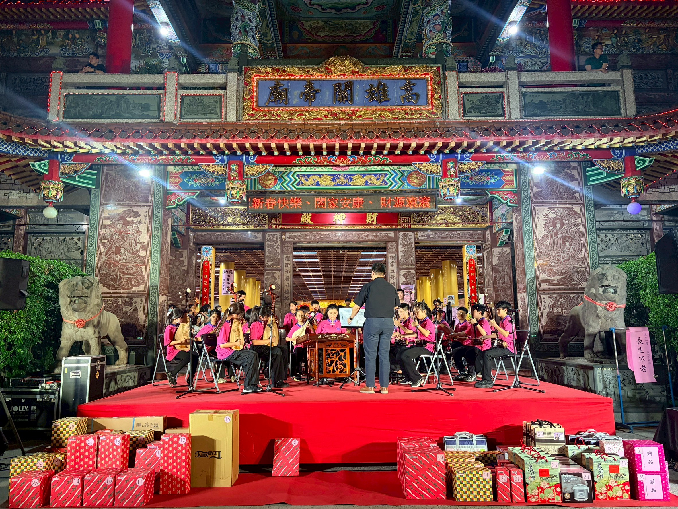 一年比一年精采,幾乎人人有獎的燈謎晚會,當晚更是人潮踴躍,由高雄關帝廟總幹事黃綵沛擔綱主持,穿插中正國小舞蹈班級國樂班同學演出,博得現場觀眾報以熱烈掌聲,高雄關帝廟主委黃富濃也率同全體委員全程參與,把春節活動帶到最高潮。